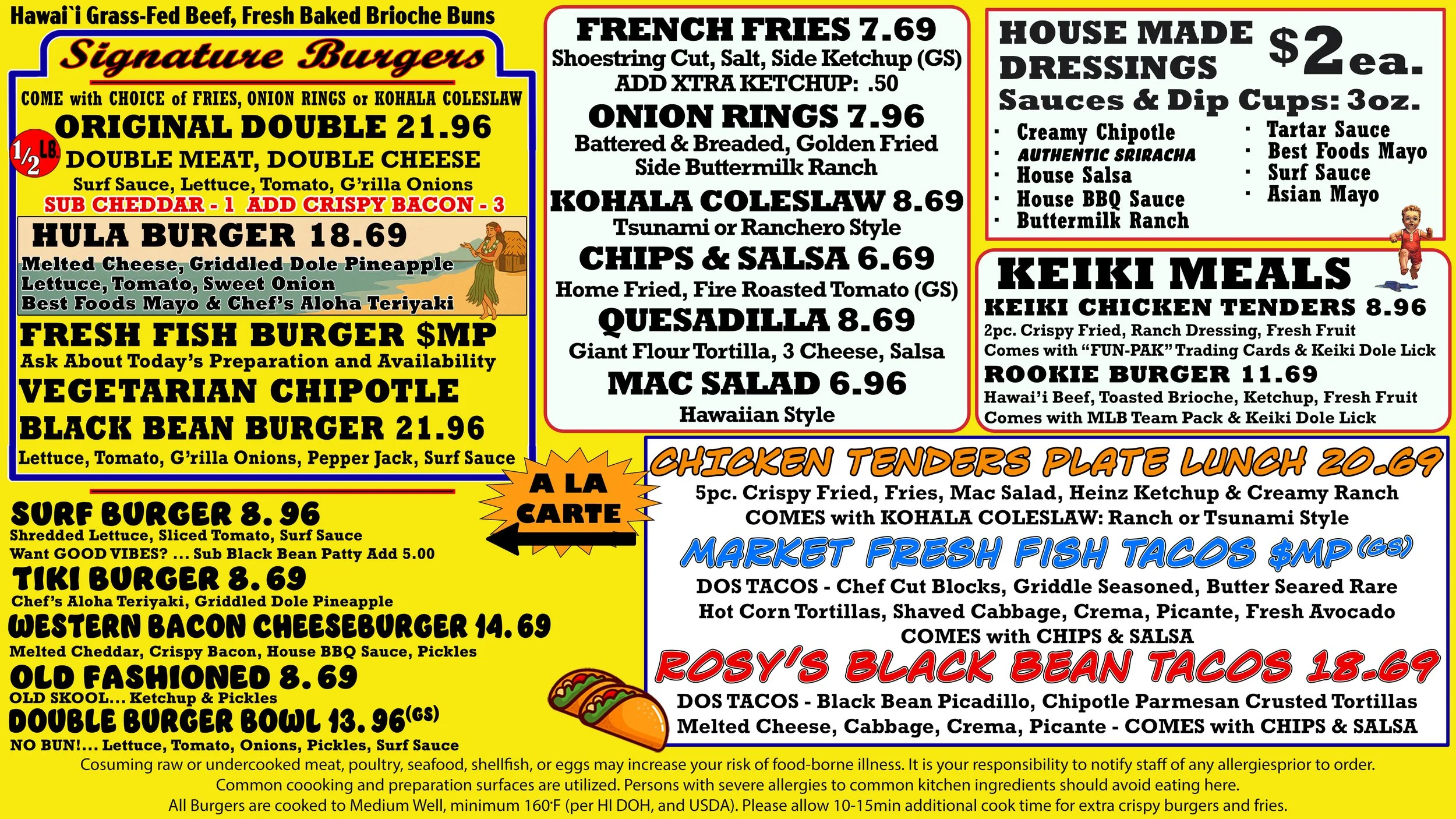 due to ongoing labor shortage, telephone ordering has beeN suspended. please order online - visit our virtual concept, surfburger.com